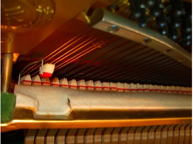 | 【画像#2 ペダルを踏んでおらず、打鍵された弦のダンパーのみが離れている状態】 |
