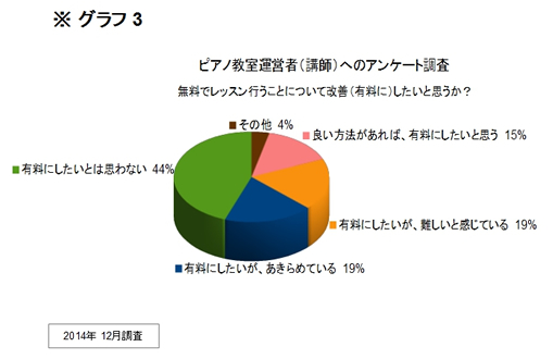 質問 3: <無料でレッスンを行うことについて改善(有料に)したいと思いますか?>