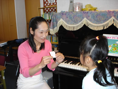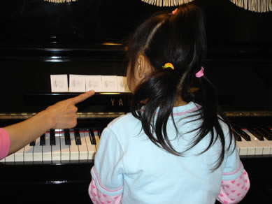 6. できるようになったら、ピアノでカードの音を弾いてみます。(正しい鍵盤の場所が わかるかな?これは大事!)