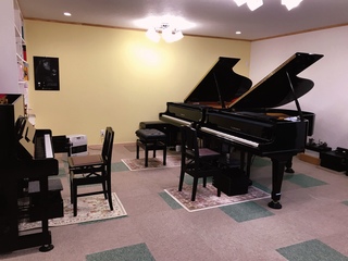豊田教室…グランドピアノ2台、アップライトピアノ1台、クラビノーバ1台、打楽器。