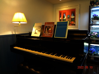 | レッスン環境 | 11畳洋室、絵画、庭園が楽しめる落ち着いたレッスン環境です。 室内には教室のシンボルフラワーのセントポーリアの花が、庭園には緋色のゼラニウムとバラの花が満開です。 レッスンに使用するピアノは、世界3大名器の一つで、コンサートホールで使用するニューヨークスタインウエイB211です。 本格的なコンサートピアノで、世界を代表するピアニストから支持をされる本物の音色を実感していただきます。 |