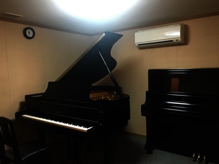 グランドピアノ1台とアップライトピアノ1台でレッスンを行います。