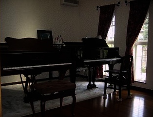 | レッスン環境 | 一軒家の日当たりの良いレッスン室です。 グランドピアノ(YAMAHA、STEINWAY)を2台並べて、一緒に弾きながら技術だけでなく感性にも響くレッスンを目指しております。 |