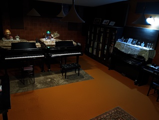 | レッスン環境 | 防音・音響設備充実 広い空間で豊かな響きを味わうことができ、落ち付いて音楽に集中出来る環境です。 ♪ヤマハグランドピアノS400B (鍵盤は象牙と黒檀使用とても貴重な素晴らしい楽器です) ♪ヤマハグランドピアノG5 ♪クラビノーバ |