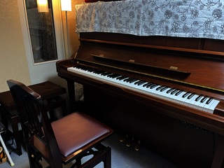マンションの一室でアップライトピアノでレッスンを行います。 |